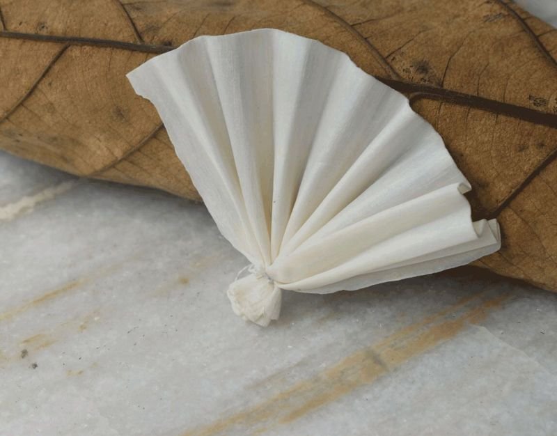 Crafted from 100% natural, eco-friendly sola wood, the fan is lightweight, biodegradable, and environmentally sustainable. Each piece is handmade by skilled artisans, making every fan unique in shape and detail. The elegant floral-inspired design features intricate craftsmanship while remaining durable, soft, and comfortable to carry. Naturally ivory in color, the Sola Fan can be dyed to match wedding themes, festive décor, or event palettes and can also be lightly fragranced with essential oils.