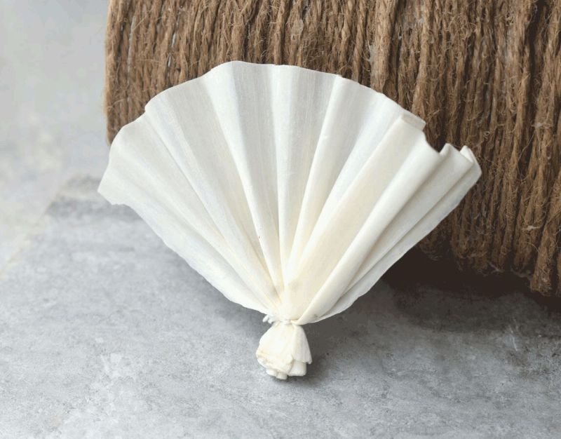 To preserve its beauty, store the Sola Fan in a cool, dry place away from moisture and prolonged sunlight. Clean gently using a dry cloth or soft brush and handle with care, especially if dyed or fragranced.