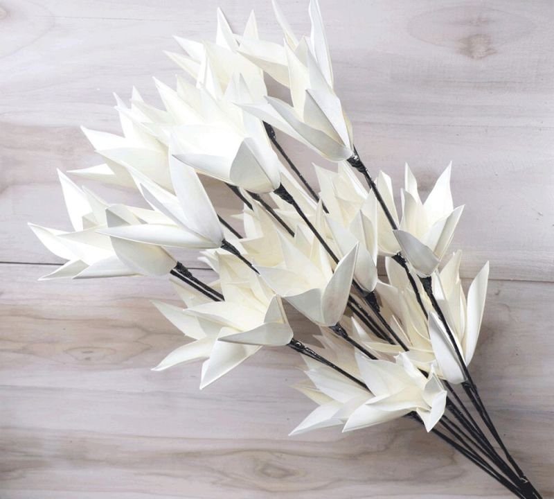 The Burl Sola Wood Flower Stick is made from authentic sola wood, a soft, lightweight, and eco-friendly material derived from the bark of the Aeschynomene plant. Known for its unique spongy texture, sola wood allows artisans to create lifelike, delicate designs that are also biodegradable. Choosing this product means supporting sustainability while enjoying a beautiful, natural décor accessory.