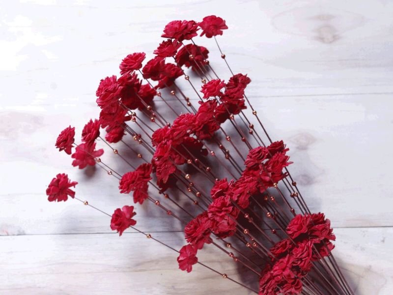 Red Sweet Buds Sola Wood Flower Stick – A Timeless Symbol of Love, Elegance & Eco-Friendly Charm.