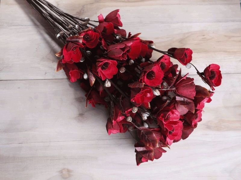 The deep red color symbolizes love, passion, strength, and celebration. Perfect for weddings, anniversaries, festivals, home styling, and gifting, these versatile sticks bring an everlasting freshness to your decorations. Unlike fresh flowers, which wilt quickly, Red Sweet Buds Sola Wood Flower Sticks remain vibrant and reusable for years, making them a cost-effective and eco-friendly choice.